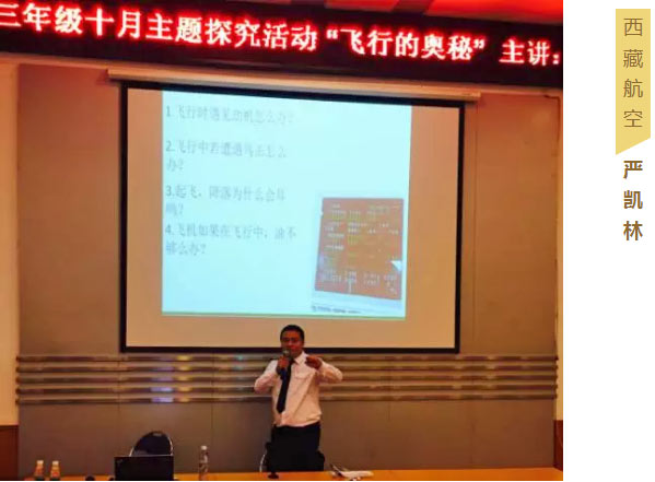 你瞧,來自西藏航空的凱林哥哥正在給孩子們普及有關“飛機”的知識呢!