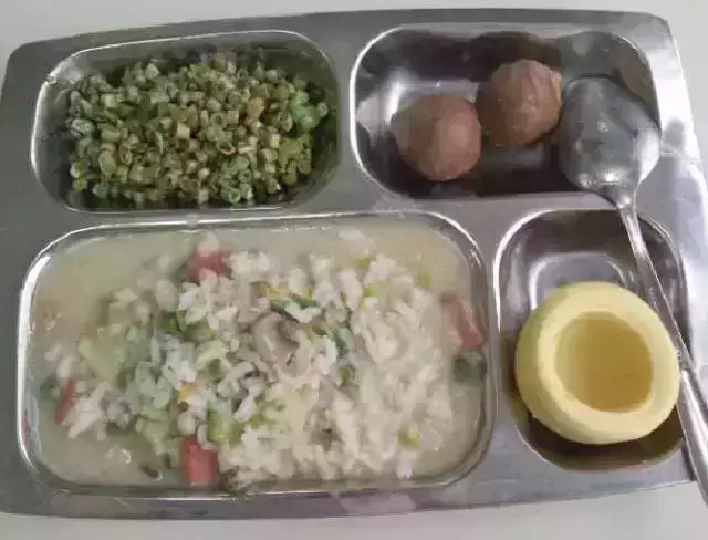 學校高度重視家長反映的情況。據了解,3月1日晚餐為:豆湯飯配牛肉丸、熗炒泡豇豆、窩窩頭。