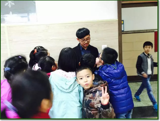 曾叔叔雖是大學(xué)老師,但很喜歡小朋友。一到教室,就被小朋友們圍著問長問短。