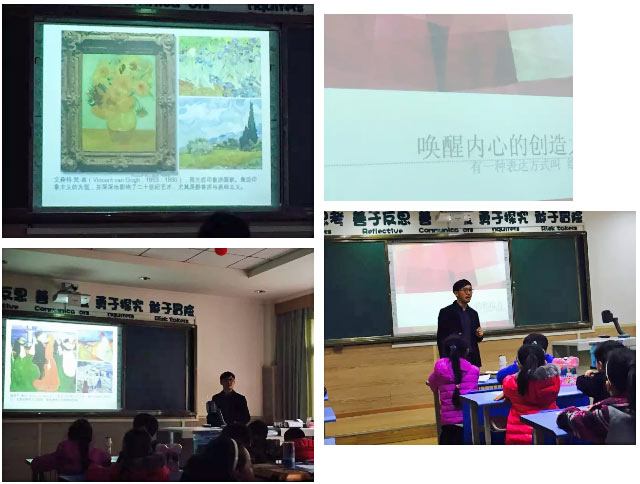 課堂上,曾叔叔通過引導(dǎo)小朋友們賞析名畫,觀察大師們是怎樣用線條、色彩來表現(xiàn)自己對現(xiàn)實(shí)世界的感受,讓孩子們明白,繪畫和作文、音樂、舞蹈一樣,也是一種表達(dá)方式,我們可以展開想象的翅膀,運(yùn)用夸張、擬人等方法來喚醒自己內(nèi)心的創(chuàng)造力,表現(xiàn)自己眼中的世界、表達(dá)自己內(nèi)心的感受。