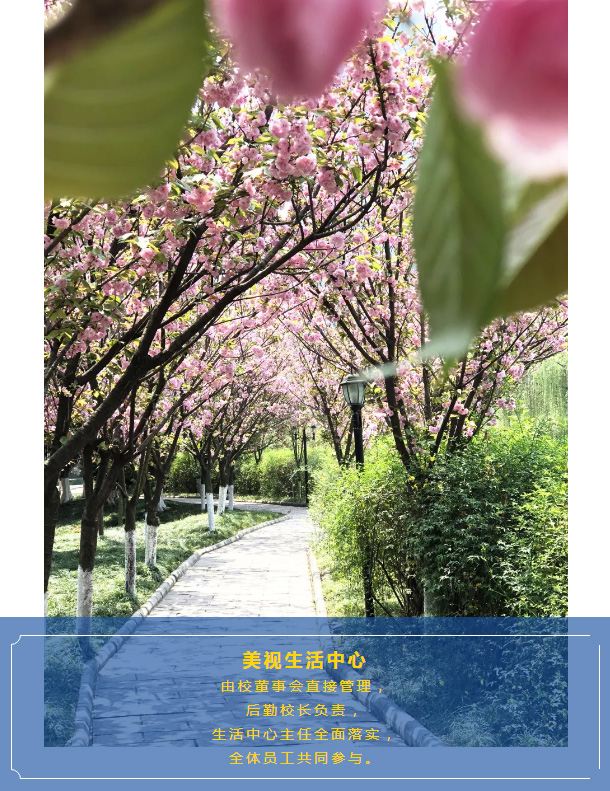 由校董事會直接管理,后勤校長具體負責,生活中心主任全面落實,全體員工共同參與,對每一項細微工作進行責任管理。從上到下,把衛生安全工作落到實處。
