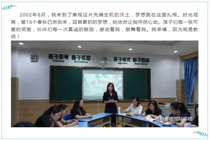 成都美視師一學校前身為成都美視學校,是成都市首批老牌民辦學校。學校于2002年經四川省教育廳批準投資建成,是一所從幼兒園至高中全學段的國家課程和融合教育雙軌制、K12、高品質、寄宿式的私立學校。辦學以來,學校一直堅持多元化教育,融合創新,取得了令人矚目的辦學成績,獲得了IB(國際文憑)授權,并通過了美國中部院校聯盟(MSA-CESS)、美國私立學校委員會(NCPAS)及認證國際(Ai)等世界領先教育機構的資格認證。同時,我們也獲得了美國大學理事會(College Board)授權開設AP課程,成為真正享有世界認可的國際學校。