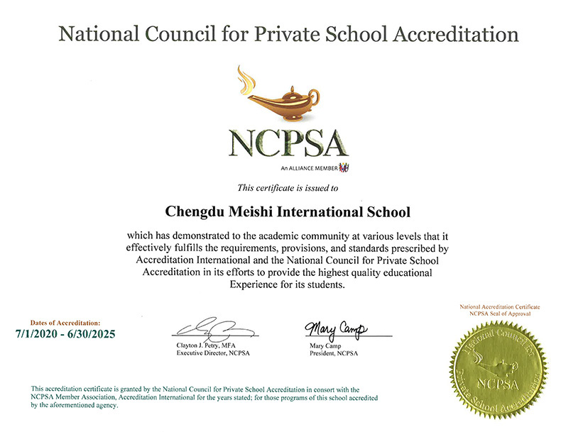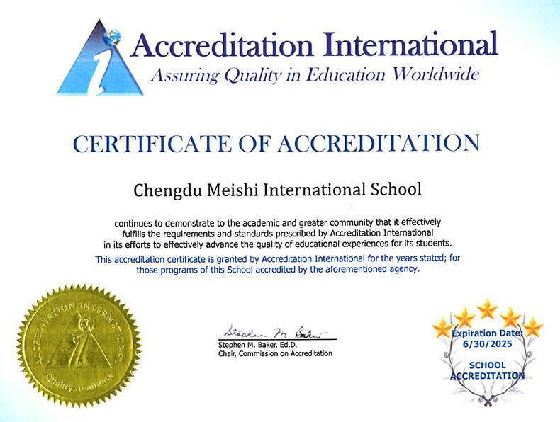 美視學校自2002年建校以來,以“優質教育源于細節”為管理原則,推進全程小班教學,創設濃郁的國際文化氛圍,探索中西教育優勢互補、融合創新,取得了令人矚目的辦學成績。今年再次,以考核全優的高水平順利通過這一嚴苛認證,AI認證證書,據悉,僅僅是評審文件,就有足足上百頁之多。至此,獲得IB(國際文憑)授權、NCA(美國北中部院校聯盟)、NCPSA(美國私立學校委員會)、Ai(國際認證)等世界先進教育促進組織認證,成為名副其實的世界認可的國際學校。