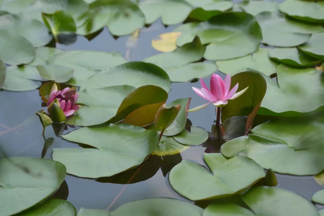 夏觀教學(xué)樓旁的菡萏荷花