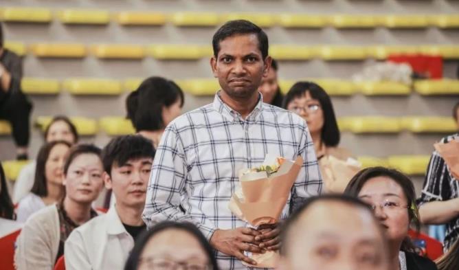 建校貢獻獎獲獎代表后勤部文仁學發(fā)言。