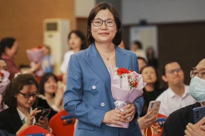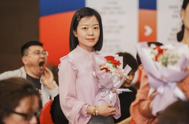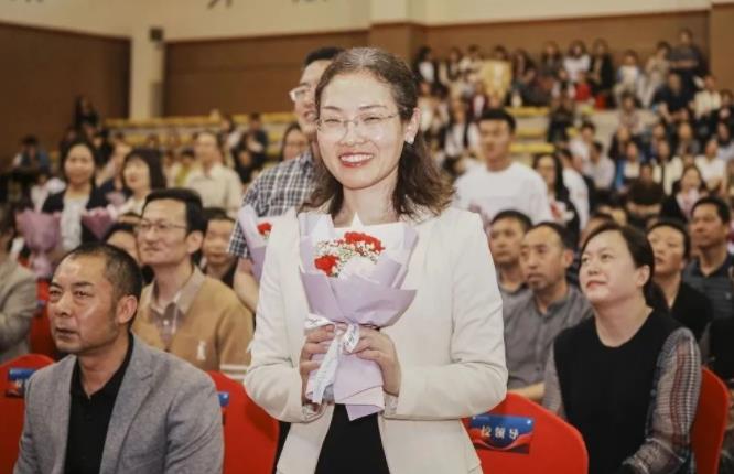 優(yōu)秀新苗教師代表朱璐瑩雙語發(fā)言,