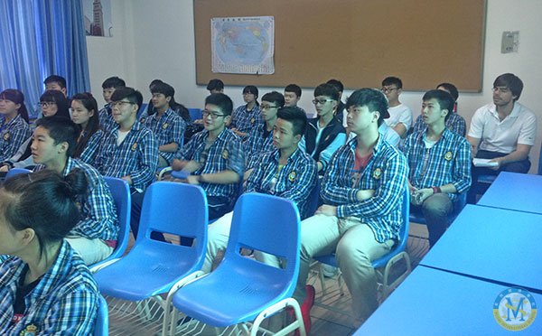 May 29 morning, the Dean from PSU came to SAEP to give Gao1 and Gao2 students a presentation about how to choose a college or university abroad, the big and small universities’ advantages and disadvantages. Let’s see some pictures together.