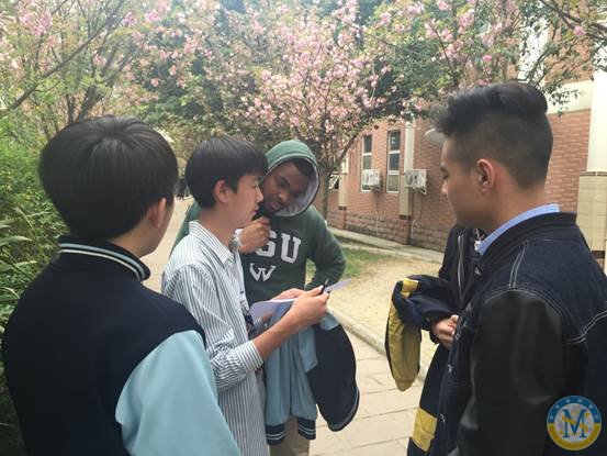 在中美英才班外教們的帶領(lǐng)下,一場時(shí)間與智慧的考驗(yàn)賽拉開帷幕。 當(dāng)開始的號(hào)令發(fā)出,同學(xué)們隨即與時(shí)間展開了追逐賽,因?yàn)樵谠蕉痰臅r(shí)間內(nèi)找到列表上所要求的東西越多,離勝利就越近。看著同學(xué)們忙碌的身影,匆忙的腳步,他們無不享受著這場趣味游戲所帶來的快感。在繁忙的學(xué)業(yè)中,此刻難得的放松機(jī)會(huì),同學(xué)們又怎么會(huì)錯(cuò)過呢?