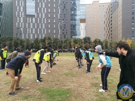 感恩節(jié)習(xí)俗中,除了我們通常所知的吃火雞、南瓜賽跑、送食物等風(fēng)俗,體育運(yùn)動也是其中一項頗有趣味的習(xí)俗。 中美英才班的同學(xué)們也在外教的組織和帶領(lǐng)下,參與了為慶祝感恩節(jié)到來而舉行的第二屆中美英才班美式橄欖球賽。活動前,外教老師向同學(xué)們詳細(xì)講解了比賽規(guī)則和注意事項。