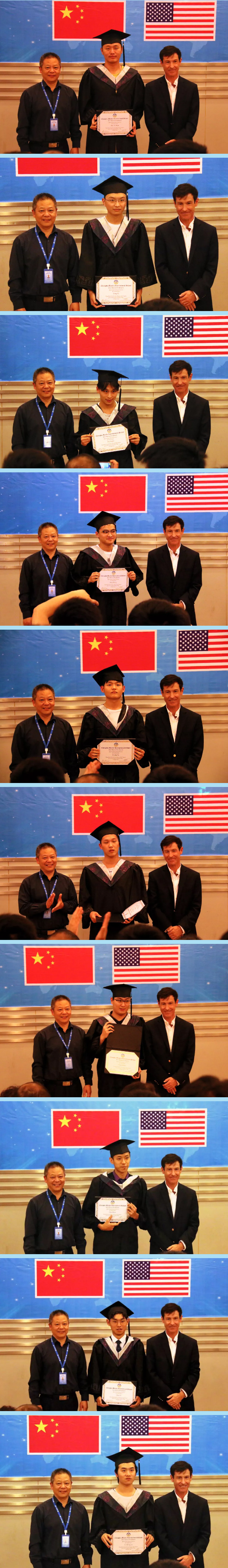 中國部校長徐德雄先生與國際英才班執行主任Dan plaut先生為畢業生頒發國際英才班結業證書,并與畢業生們合影留念。